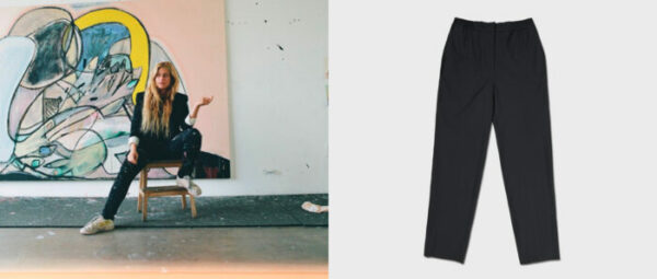 If Picasso’s stripes became legendary, Austyn Weiner’s paint-splattered track pants may be on their way to cult status. The Miami-born, LA-based painter (b. 1989) has spoken about her studio “uniform”: wearing the same plain trousers every day, so the fabric becomes a living map of her labour. The marks of paint and time aren’t accidents – they’re part of the work.