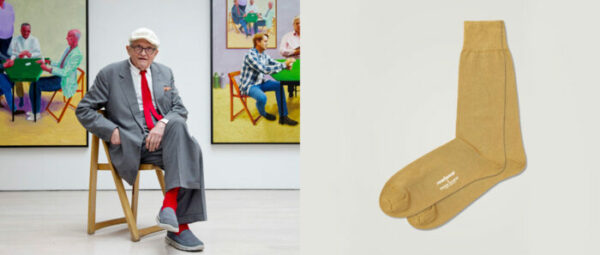 David Hockney’s clothes are as much a signature as his brushstrokes. Over decades, he cultivated a personal “uniform” – the blue Oxford shirt, yellow tie, grey cardigan, pleated trousers, round spectacles and newsboy cap. But one detail really stood out: his socks. Bold stripes, pastel shades, mismatched colours – Hockney’s ankles were always alive with painterly joy.