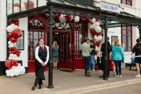 Taking inspiration from 1930s team uniforms – and from Harry Ramsden himself – I designed a longline double-breasted waistcoat to add drama and polish, paired with a red knitted tie in the brand’s signature shade. Worn with a crisp white shirt and black trousers, the look feels rooted in heritage without slipping into costume. It’s memorable, distinctive and genuinely elevates both the team and the guest experience.