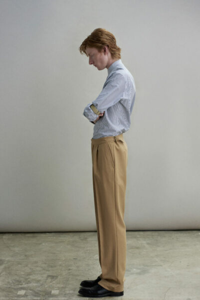 Both pairs, shot by stylist Gareth Scourfield in 2025, slot effortlessly into the existing Readywear range, and I love styling the elasticated style with our Relaxed Fit Shirt for an easy, modern look. I can’t wait to start putting these pieces into production and seeing them in real workplaces.