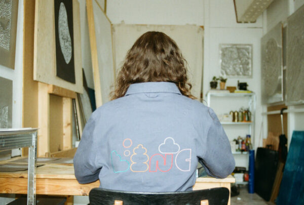 I always dress in layers. Usually a shirt with a vest. I need things I can peel off when it’s too hot, but when it’s cold in the studio, it’s really cold! So I’ll do a vest, a long sleeve T-shirt, a jumper, then an oversized shirt. If I’m doing drawings, I can dress up a little bit more because it doesn’t require too much moving about. Whereas if I’m doing a large piece, I need comfy trousers with stretch so there’s nothing digging into me when I’m sitting on the floor. A comfy top, anything with a nice soft fabric. Natural fabrics are best – denim or wool with a stretch, or linen – just anything hard-wearing and comfortable.